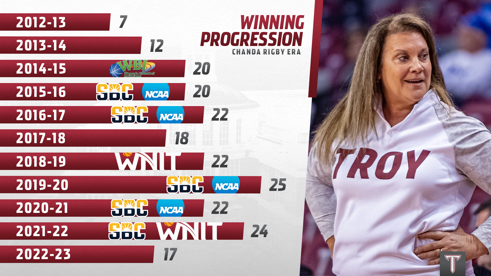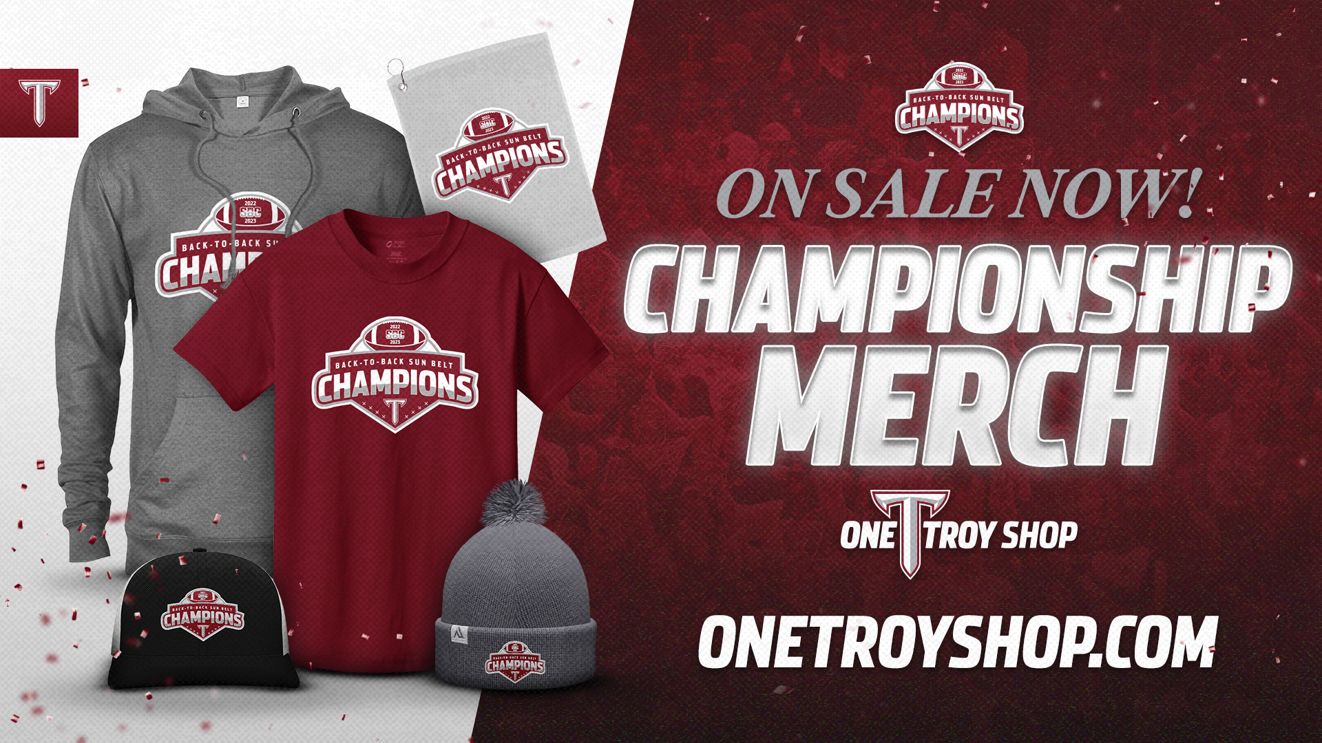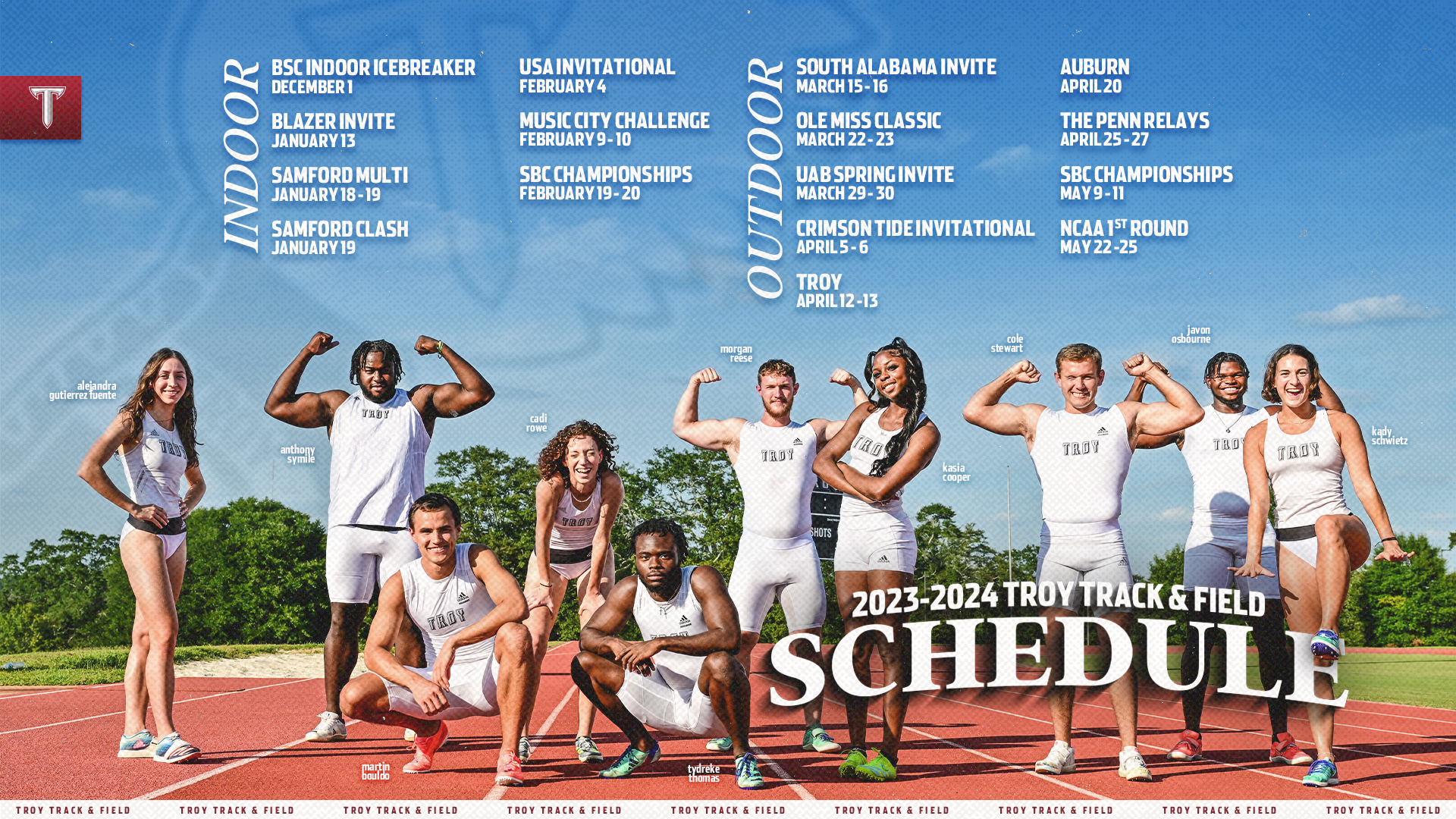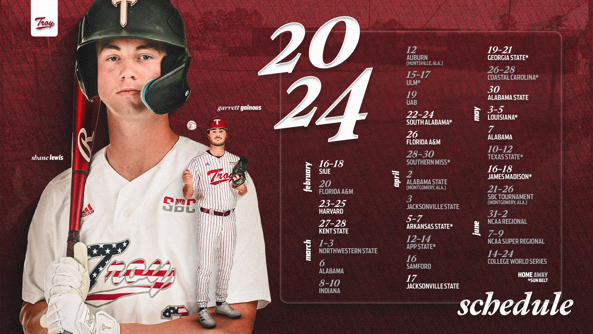 Various graphics for Troy University Athletics during the 2022-2023 and 2023-2024 seasons