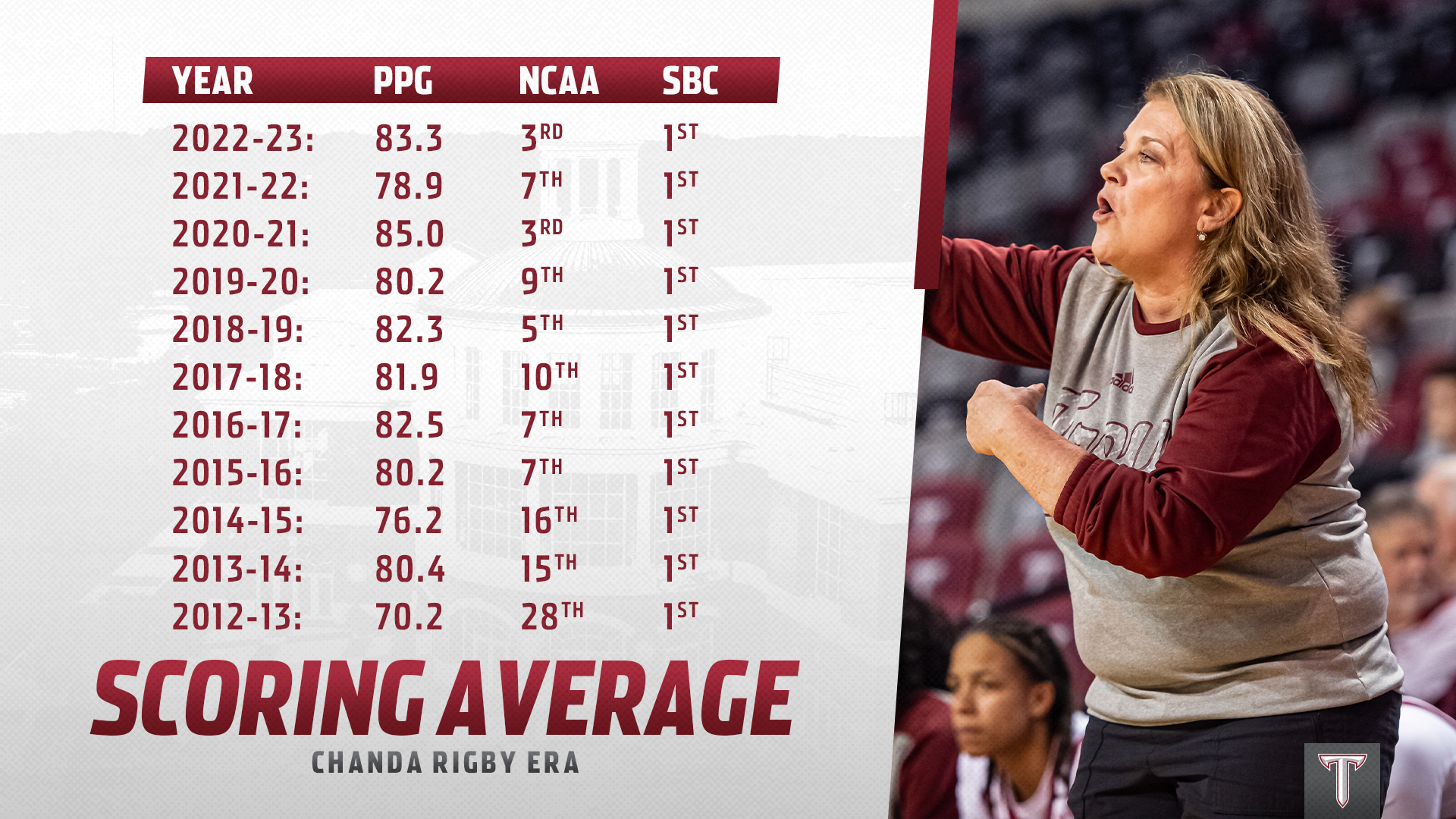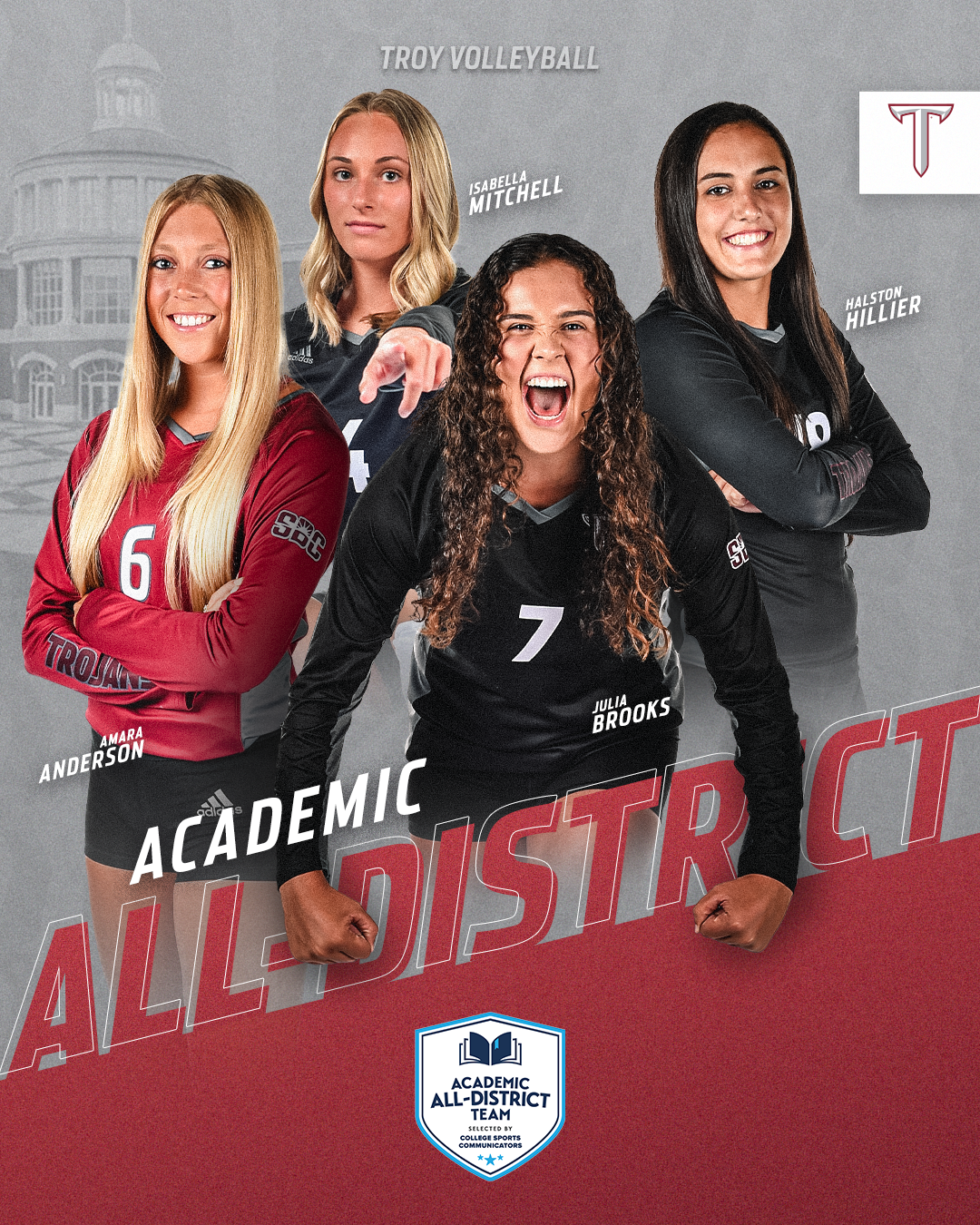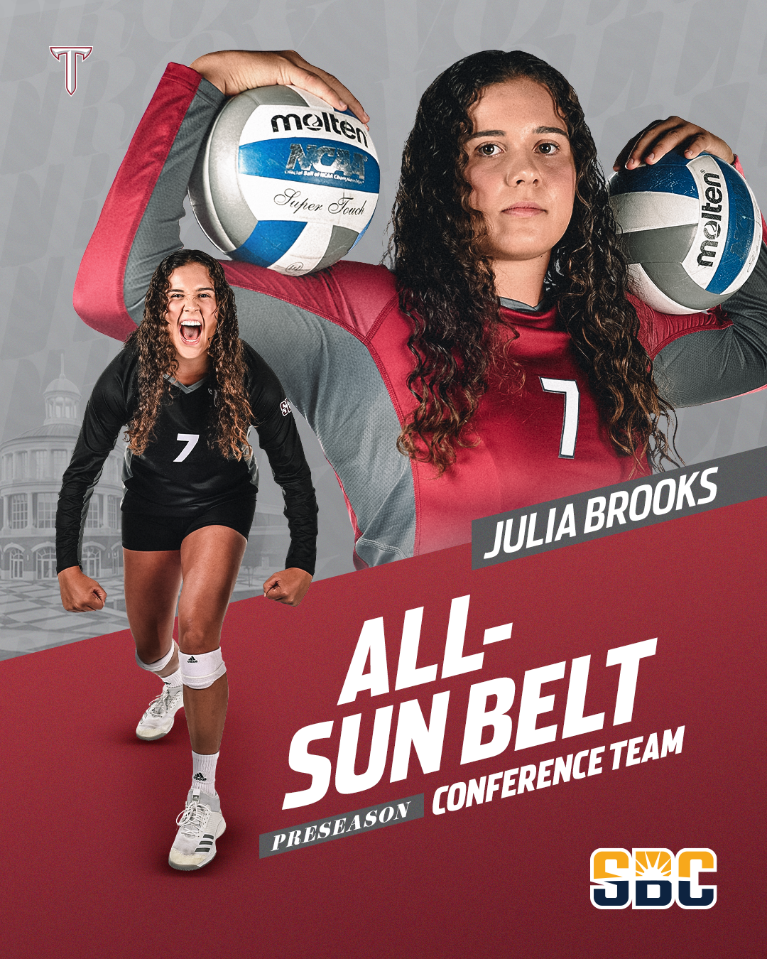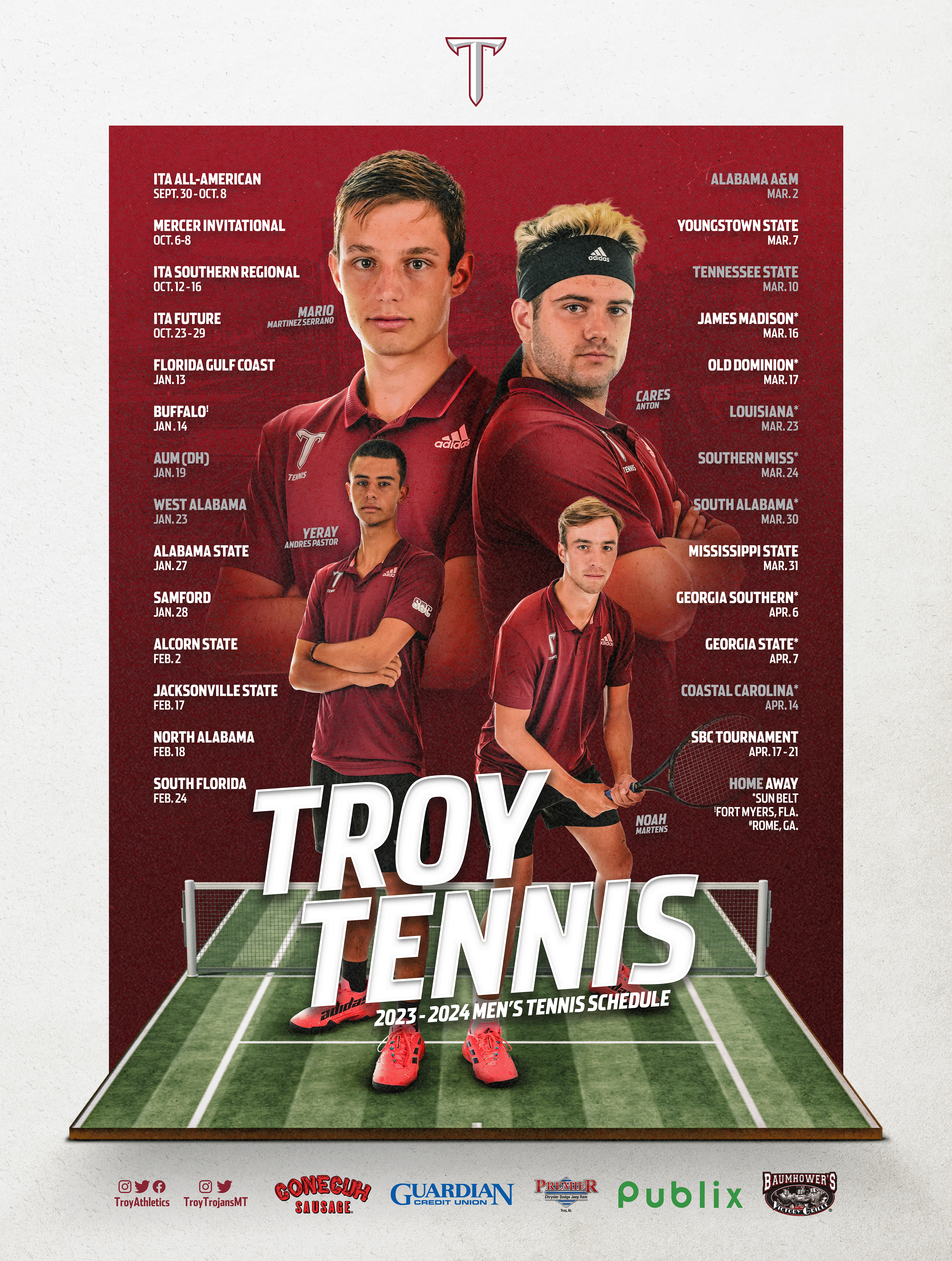 Various graphics for Troy University Athletics during the 2022-2023 and 2023-2024 seasons