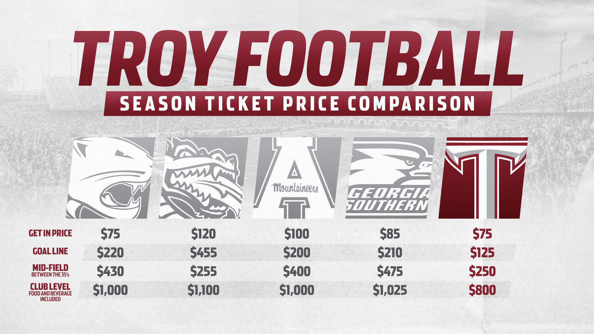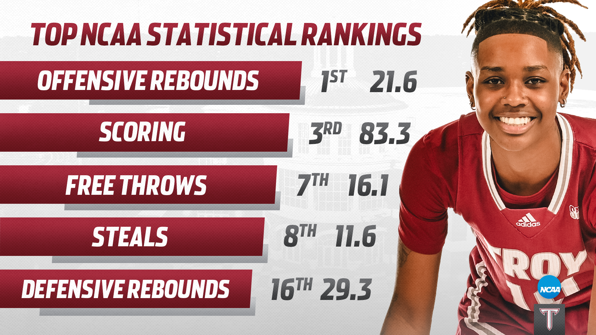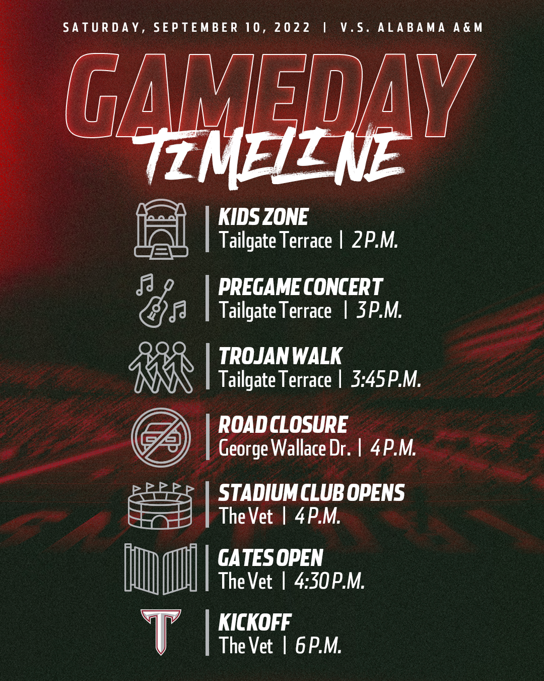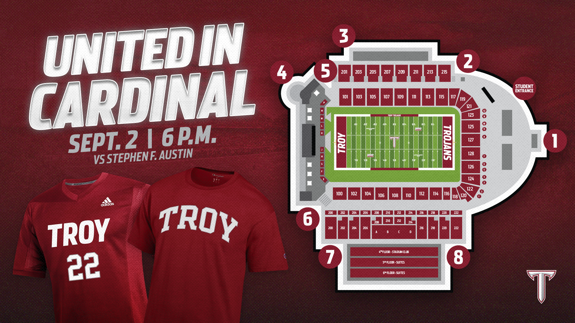 Various graphics for Troy University Athletics during the 2022-2023 and 2023-2024 seasons